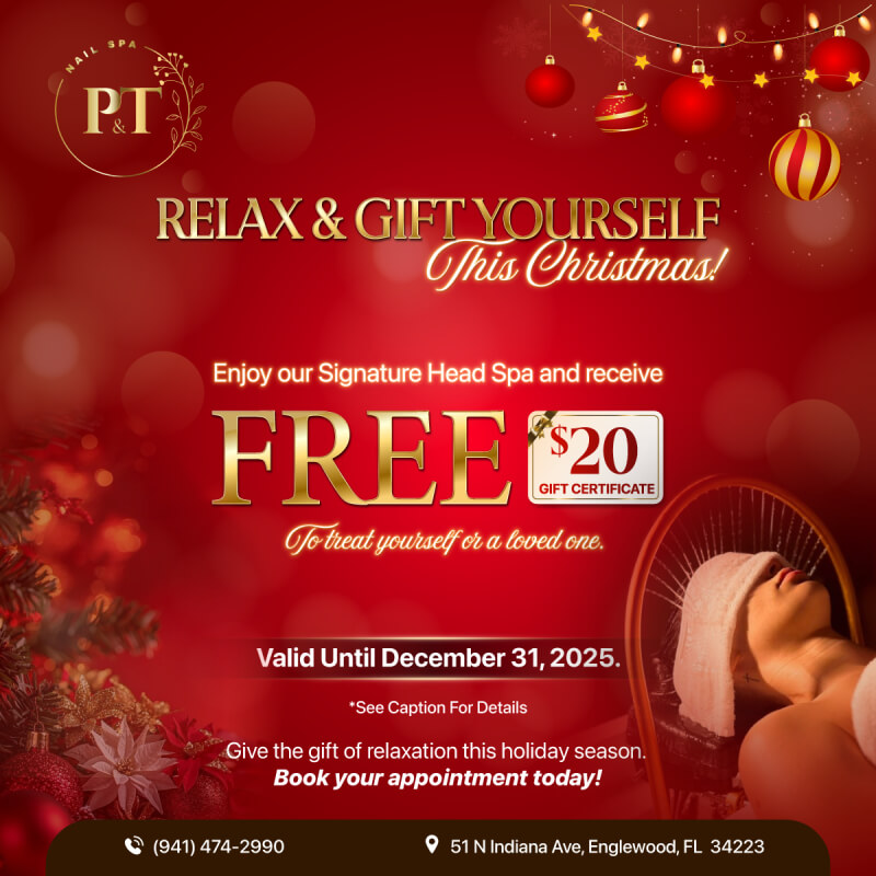 Whether you prefer a timeless look or the latest nail trends, we strive to deliver exceptional results with every visit. Relax, unwind, and indulge in the ultimate nail care experience at P & T Nail Spa—where beauty and comfort come together.